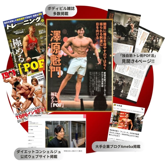 フィジーク特化型減量メソッドでこれまで多くのクライアントが、初出場で入賞したり、前年よりも明らかに仕上がった体で大会に臨むなど、大きな成果を出しています。