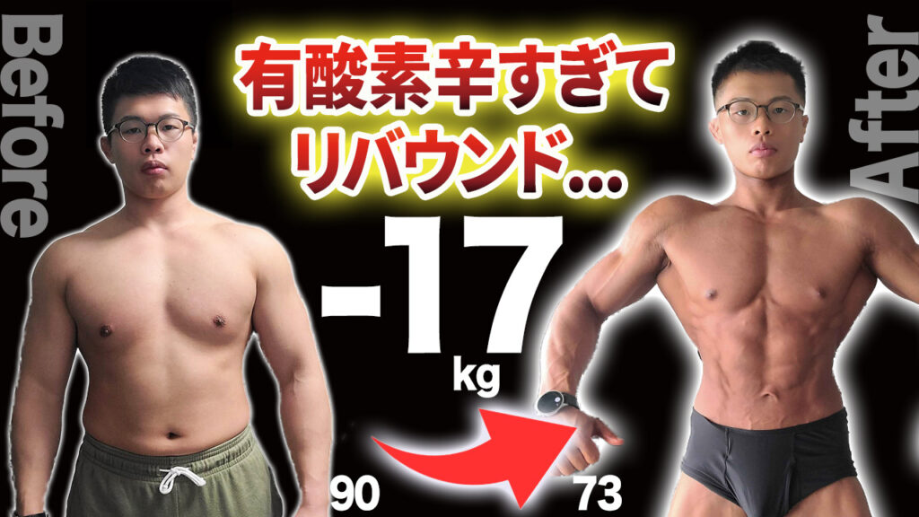 【リバウンドで絶望】6ヶ月で-17kg落としフィジーク大会優勝!糖質制限なし、減量しながらトレーニング重量UPに成功!