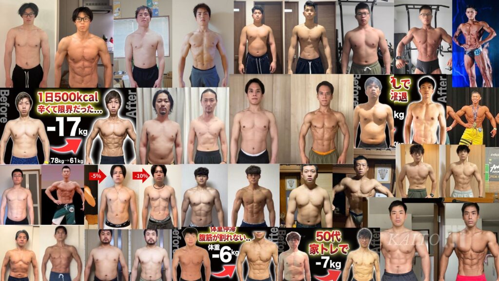 これまでに延べ300名以上のボディメイクをオンラインでサポートし、初心者から上級者まで、多くの方が「筋肉を残したまま最後まで絞り切る」ことに成功しています。